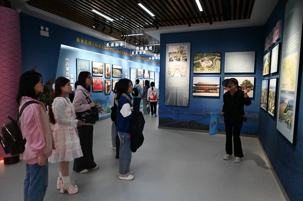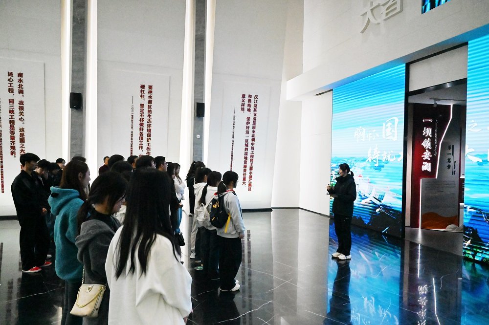 在中线工程展览馆,珍贵的历史照片和实物像一帧帧“历史胶片”,放映着党和国家“集中力量办大事”的战略魄力,师生们深刻体会到党和国家在实现跨流域调水这一人类奇迹中所展现的战略眼光与担当精神,这无疑是最生动的入党启蒙“金课”。